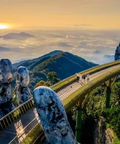 – Tham quan chụp ảnh cùng Cầu Vàng. Cây cầu được nâng đỡ bởi đôi bàn tay vững chắc, nằm giữa lưng chừng trời với độ cao hơn 1.400m sẽ khiến Quý khách vô cùng choáng ngợp bởi mức độ kỳ vĩ của không gian núi rừng vô tận.