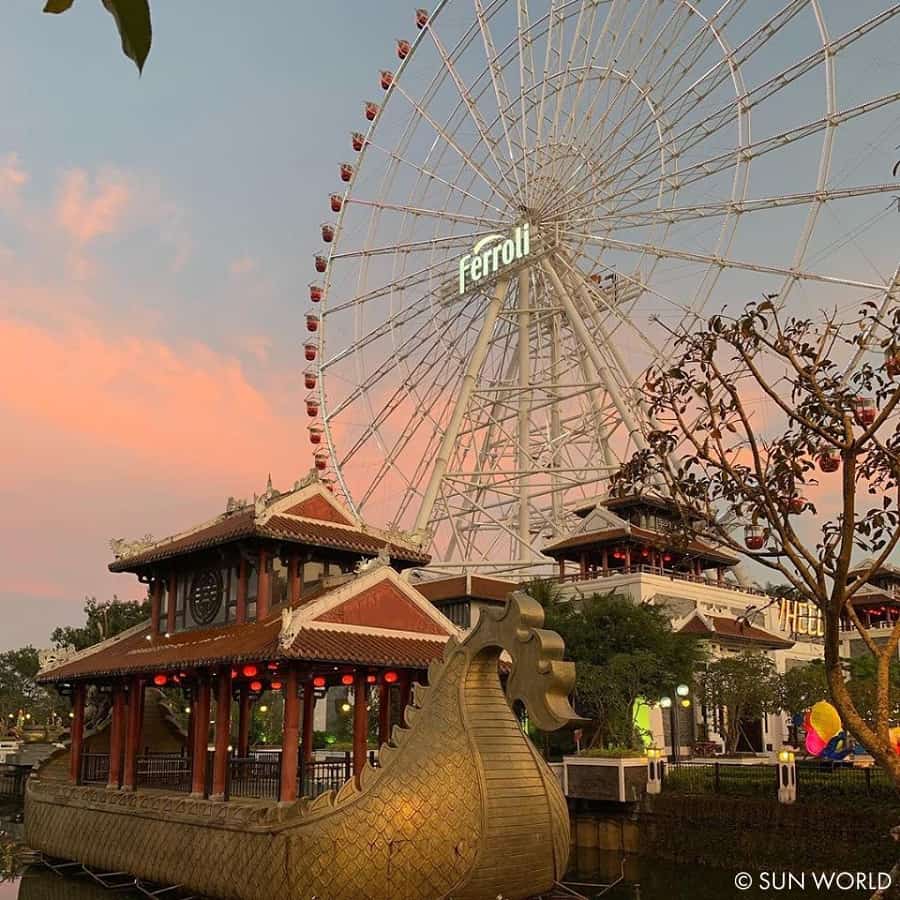 Sun Wheel – vòng quay mặt trời: Đây là một trong năm vòng quay lớn nhất trên toàn thế giới cũng là công trình biểu tượng mới của thành phố Đà Nẵng. Bạn sẽ có cơ hội ngồi trên cabin cao 100m để ngắm nhìn thành phố biển tuyệt vời ở 1 góc độ mới lạ.